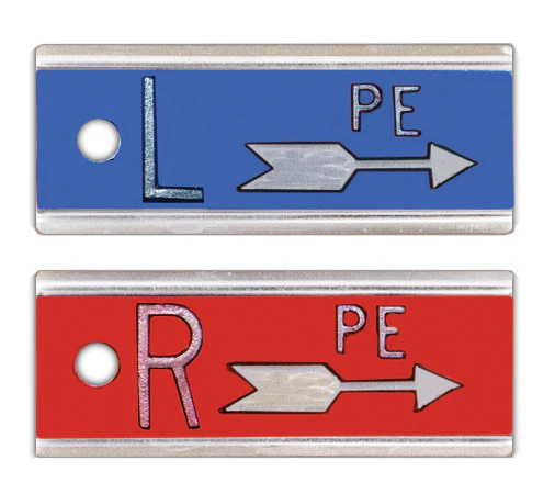 ELITE markers are color coded: R-Red / L-Blue and feature encased high density lead letters in aluminum casing for durability. Available with or without initials or numbers.