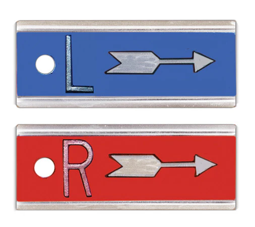 ELITE markers are color coded: R-Red / L-Blue and feature encased high density lead letters in aluminum casing for durability. Available with or without initials or numbers.