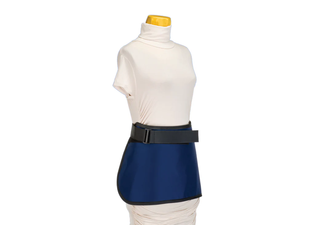 Wolf’s classic protective apron is held on by a belt with a hook-n-loop closure.