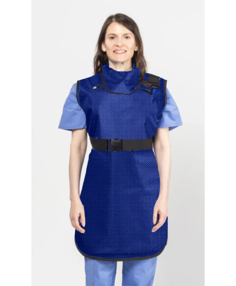 COAT APRON - .5 mm Lead Free with Thyroid Collar 24X40 Shimmering Electric Blue - Medium