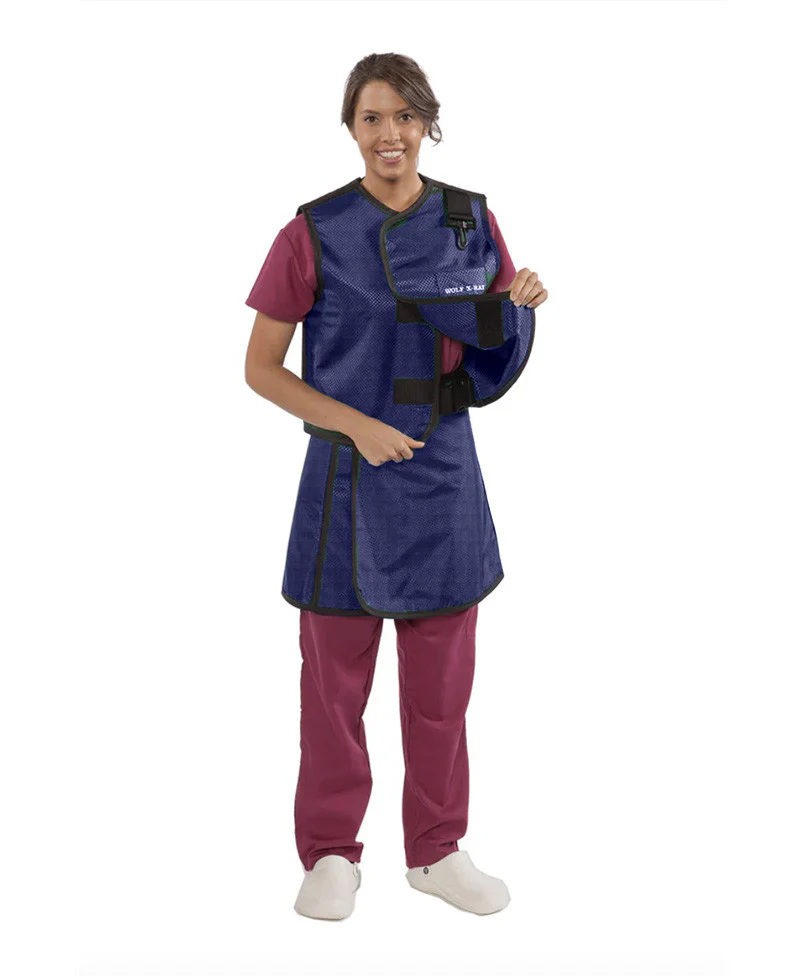 WOMEN'S APRON AND VEST : .5 mm Light Weight Lead W/THYROID COLLAR VEST: 22X21 APRON: 19.5X35-40 Shimmering Electric Blue - Medium