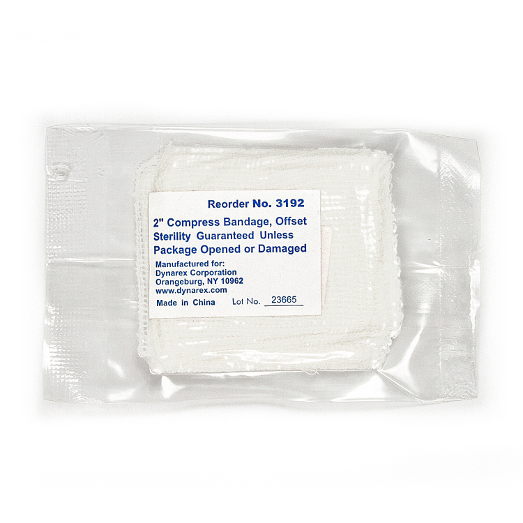 Dynarex Compress Bandages are premium-quality cotton dressings engineered to wrap injuries and add pressure to a wound site during the recovery process. These breathable Bandages securely wrap wounds and soak up fluids at the injury site for optimal healing. The soft Bandages are crafted with cotton for additional comfort. Bandages are wrapped in sterile packaging; ideal for first aid and field use, as well as in hospitals, clinics, and homecare settings. These versatile Bandages accommodate a wide range of injuries, including burns, cuts, scrapes, and surgical sites.