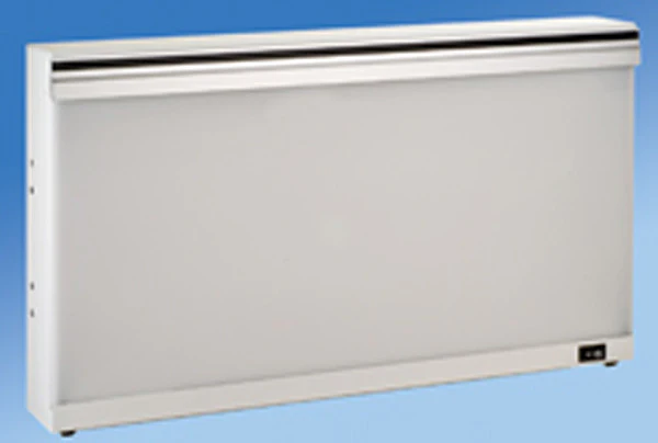 The Podo Lite can be desk mounted, wall hung or recessed in the wall. The Podo Lite features steel construction, a white baked-on enamel finish, Magic Grip film retainer, two fluorescent lamps (20 watts each) a rocker switch and a 6’ power cord with 3-prong plug.
