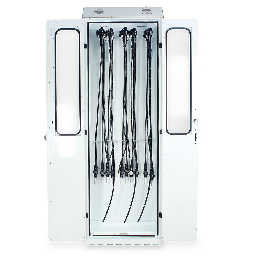 The Scope Channel Drying Cabinet with Dri-Scope Aid® supplies HEPA-filtered air to all internal channels to aid in drying endoscopes with an automated drying cycle for improved turn-around time, and a continuous venting cycle for overnight storage. The Dri-Scope Aid® system in the SureDry Scope Cabinets provides a complete drying system for your facility. The SureDry Scope Cabinet includes the industry best Positive Pressure HEPA Filtered Drying system. Inside air is replaced inside the cabinet 4 times per minute. Meets or exceeds Joint Commission, AORN, SGNA, and AAMI guidelines.